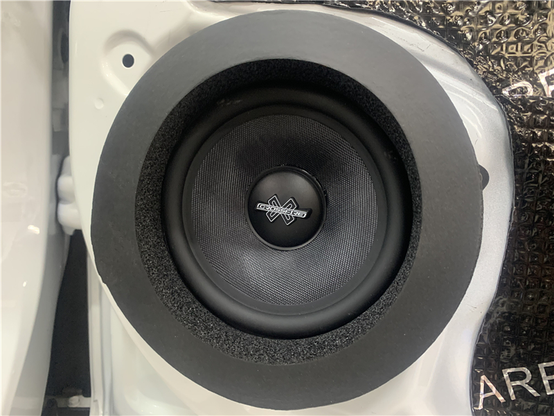 升级的第一步是打造静谧的听音环境。前后车门均进行了专业双层隔音处理,有效抑制行驶中的风噪和共振,为音响发挥提供理想环境。前后8只喇叭都选择了交叉火力CF-A602S两分频套装,这套喇叭以其精准的音色和均衡的表现备受好评,更重要的是能够实现原位无损安装,不破坏原车内饰。
