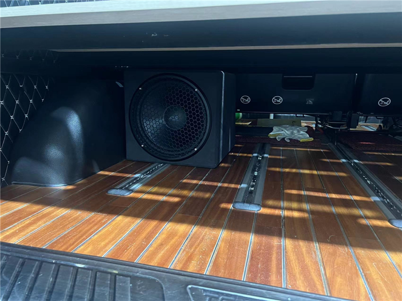 低音系统选用德国RS竞赛12寸超低音箱体炮,紧靠座椅后背摆放。箱体高度是经过精准测算,不会影响到车厢盖板的正常使用,实用性与音质提升两不误。这只低音炮带来了深沉有力、干净利落的极低频,让大动态音乐和电影音效都表现得震撼人心。