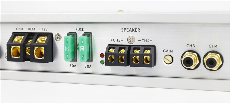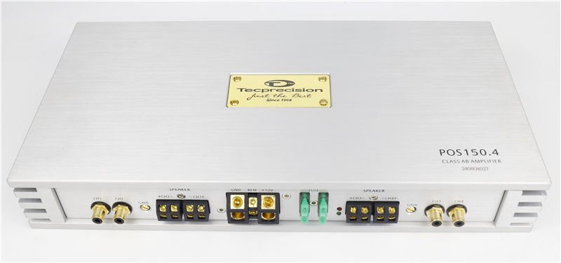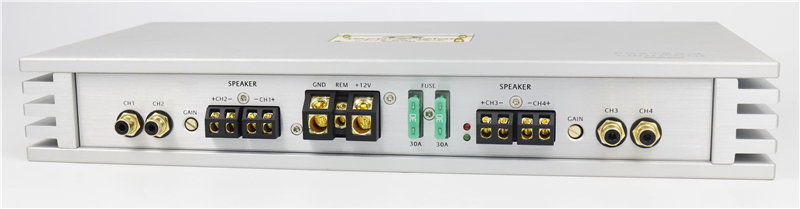 POS150.4采用了侧出连接方式,所有接线端口位于机身一侧,极大地方便了在狭窄车厢环境内的安装与布线。并且所有RCA信号输入端子和电源、喇叭输出端子,均采用了24k镀金处理。这不仅有效抗氧化、确保长久使用下的接触可靠性,更能显著降低信号传输损耗,为纯净的音质信号打开“绿色通道”,即便在黄金价格飞涨的今天,品质也毫不妥协。