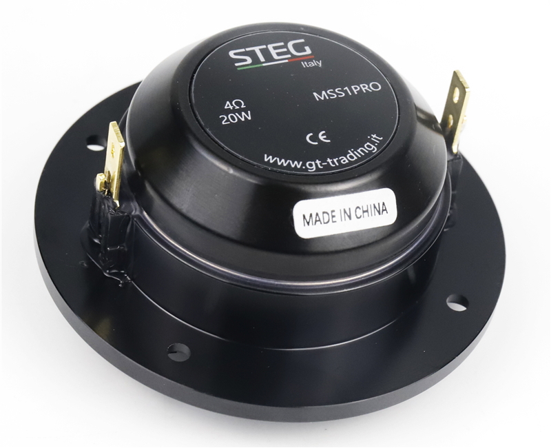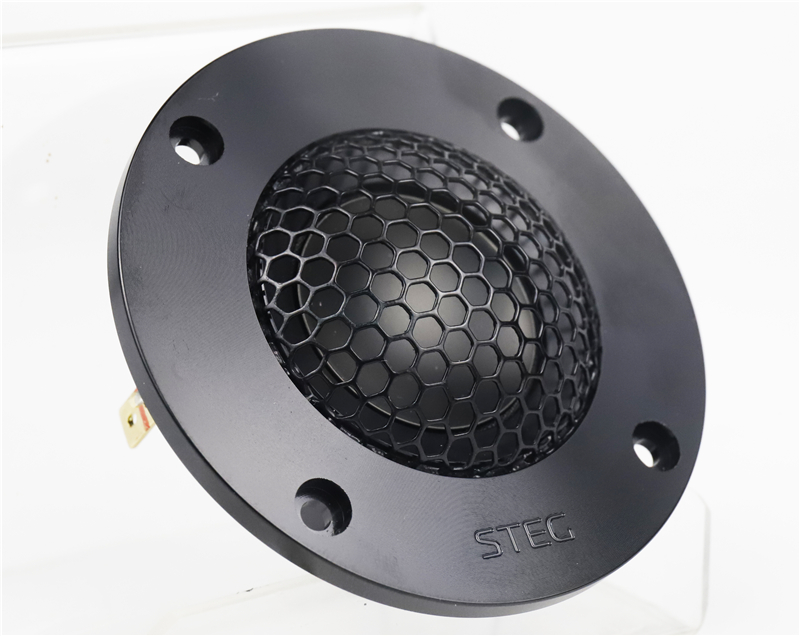 高音做到40kHz真的很难,现在音响行业为达到这个效果有两个途径:一是材料,如钻石高音、铍高音等;二是结构上,如铝带高音,ATM气动高音。STEG史泰格MSS1PRO这款超级高音,是用反凹金属振膜提升高频的延伸,配合专门开发的丝质R边悬边,巧妙平衡了振膜的顺性与阻尼特性,既保证了高频所需的迅捷移动,又有效控制了谐振失真。独立后腔设计则进一步延伸了高频下限,使得单元能够从容应对从1.1kHz至40kHz的广阔频响范围。