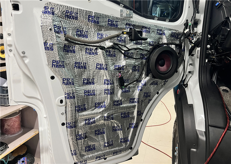 改装的第一步是对驾驶室左右车门进行双层隔音处理,为音响系统创造一个纯净的声场环境。