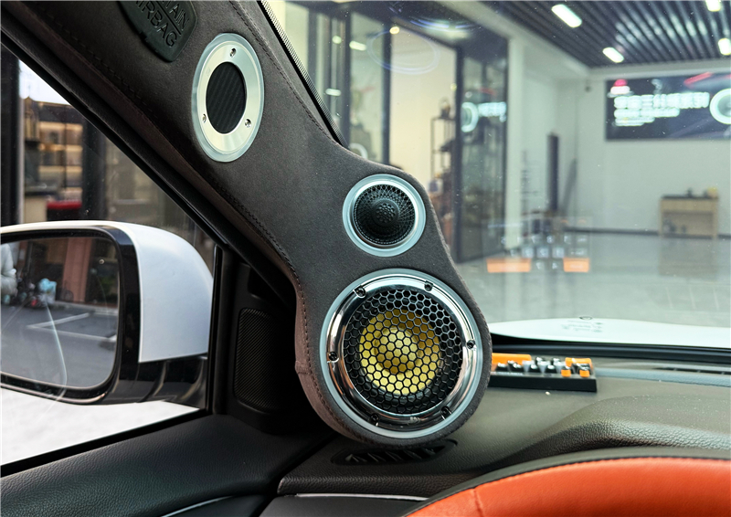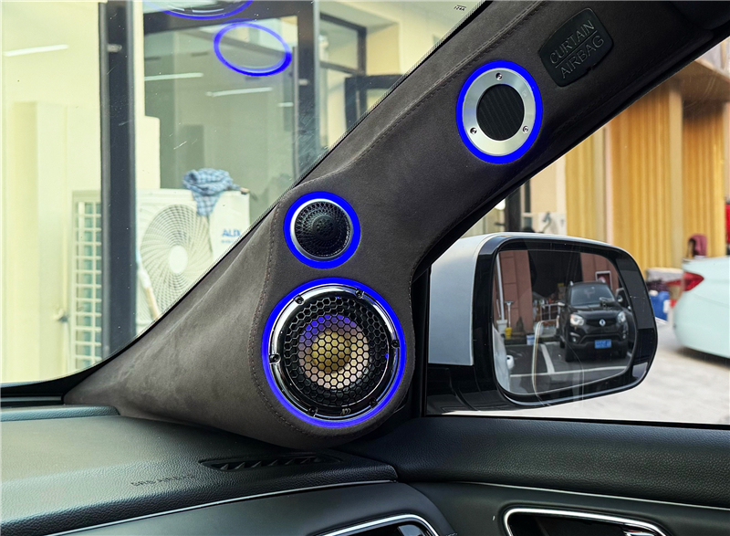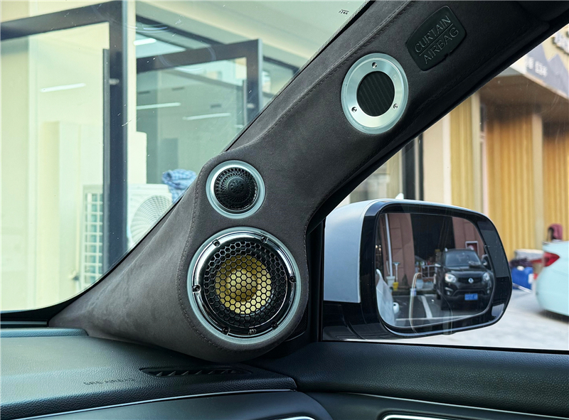 前声场采用四分频布局,高音和中音单元以"8"字型倒模在A柱,傲世之声气动超高音倒模在A柱高位,带来更宽阔的声场表现,让高音细节清晰通透,中音饱满自然,仿佛音乐从前方扑面而来,营造出立体的环绕感。