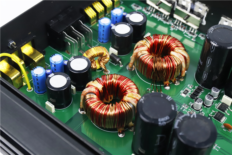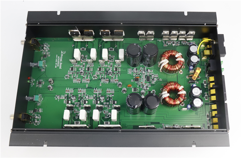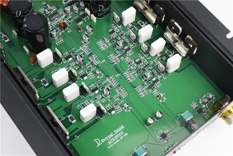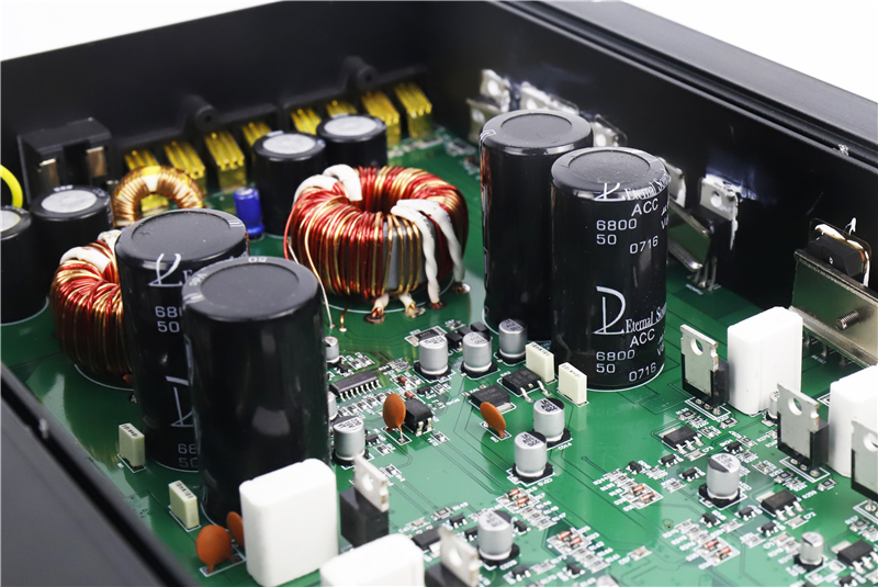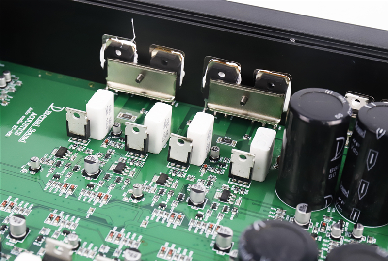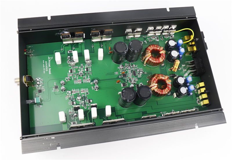 打开底板看内里,两款功放均采用经典的AB类放大电路,在音色温暖度和高频细腻度之间取得了绝佳的平衡。高品质环形变压器,配合每声道高达6800UF的“大水塘”滤波电容,构成了强大的能量储备系统。这意味着功放在应对大动态音乐信号时,能够瞬间提供充足的电流,确保声音的稳定性和爆发力,绝不会出现软脚或失真。