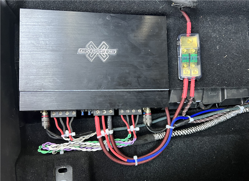 交叉火力CF-T150.4四路功放,专门驱动前声场喇叭,采用主动分频设计,能将高、中、低频信号独立处理,避免相互干扰,从而让声音更干净、有力。并且是隐藏安装在座椅底下,不占空间,也不影响日常使用。