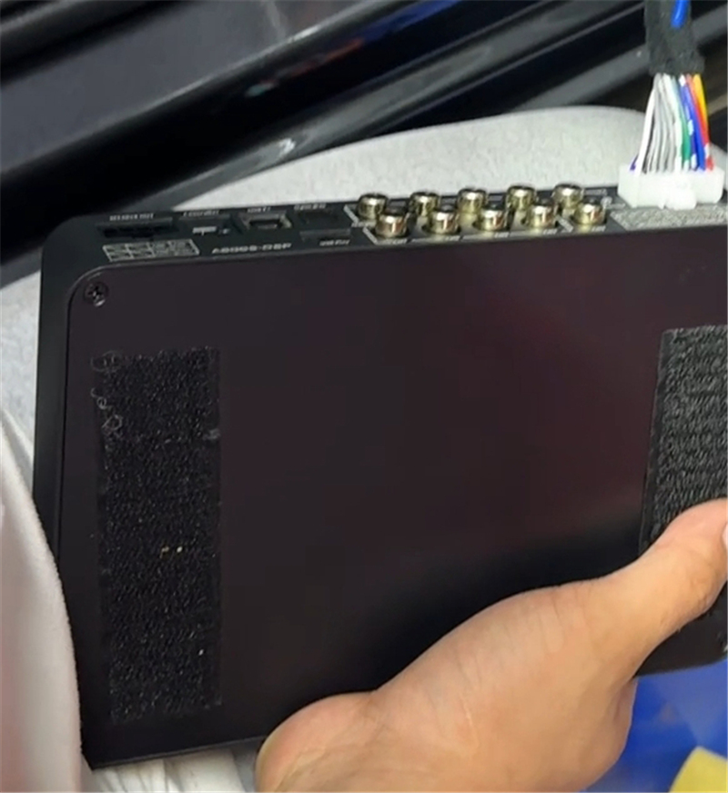 座椅下暗藏的交叉火力CF-A600S DSP功放,不拆原车线路,有专车专用线束与原车主机对插。不仅为原车声场喇叭提供了更加充足的功率,再有专业调音让每个喇叭精准发声,音质得到全面提升。