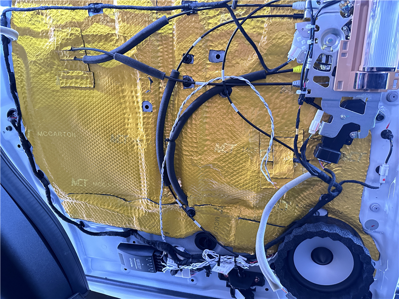 中低音喇叭也是车门原位安装,但为了有更的中低频表现,车门做了双层隔音处理,同时也有降隔绝了行驶中的风噪和路噪。
