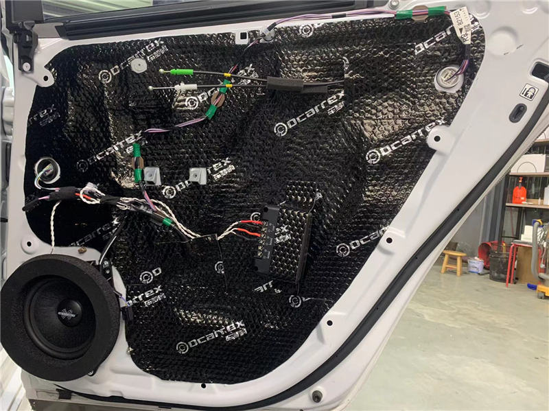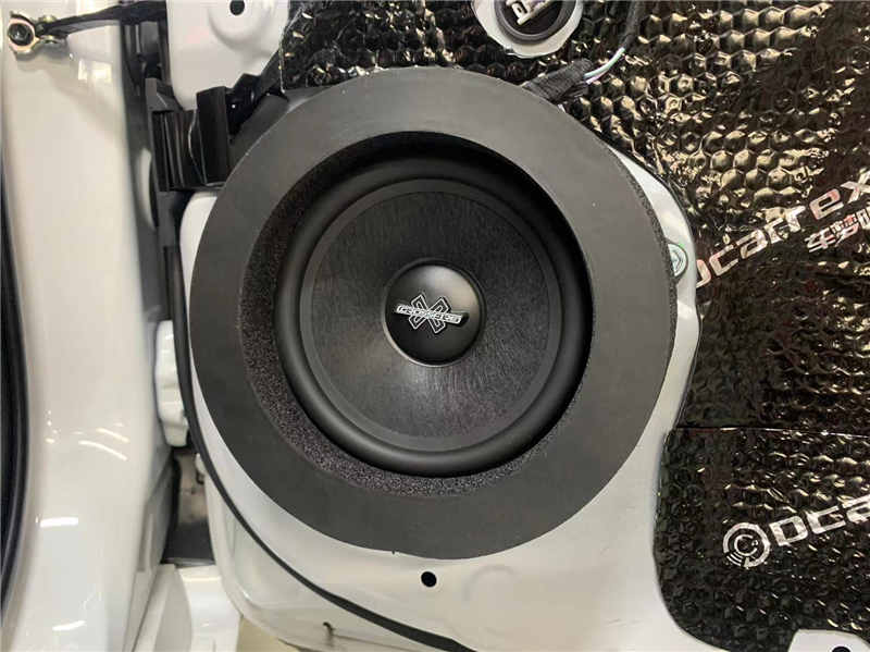 为了营造更具包裹感的聆听体验,后声场同样使用了CF-650XS套装,高音单元在车门内饰板上开孔安装,中低音原位安装,与前声场前后呼应,共同构建出一个立体而饱满的声场空间。