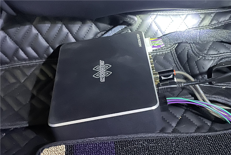 在驾驶座椅下,隐藏安装了交叉火力CF-A600S DSP功放,不仅能提供充沛的功率驱动所有喇叭,通过专业的调校,让声音的定位精准,各频段衔接圆润,层次清晰,打造出具有环绕感与临场感十足的聆听空间。