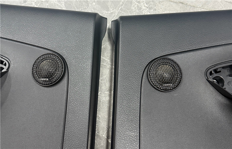 后门喇叭作为补充与延伸,选用了赫兹的两分频套装喇叭。中低音单元同样原位安装于后车门,高音单元则车门内饰板打孔安装,还保证了后排乘客也能获得清晰的高频聆听体验。