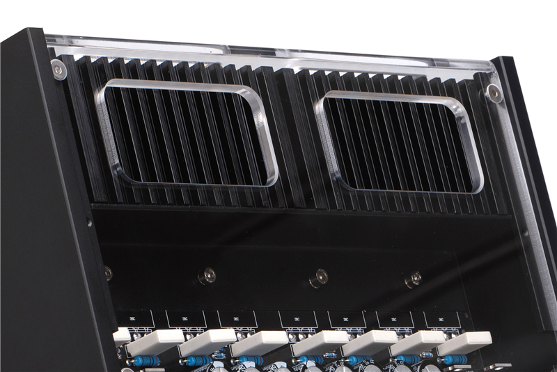 透过亚克力面板,深入其内部,全部法国设计的AB类电路,精挑细选各种发烧元器件,精选的MOSFET功率管与输出晶体管构成独特的放大架构,确保了功率输出的高度稳定与极低失真。额定功率120Wx4W稳定输出,储备充沛,足以从容驾驭各种高水准扬声器,重现音乐中的宏大动态与细微起伏。智能晶控保护电路则如一位沉默的哨兵,时刻监测着过热、电压异常、短路及低阻抗状态,确保系统在任何工况下均安全无忧。