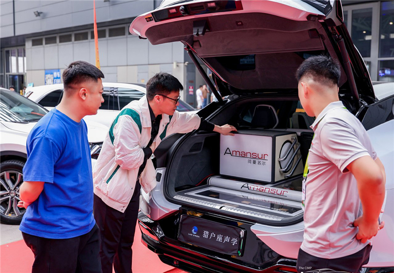 在改装技术层面,Amansur阿曼苏尔展现了其深厚的工艺功底。每一台展车都凝聚了团队对极致声学的追求,尤其体现在其精湛的倒模工艺上。从A柱到尾箱,每一个倒模造型都经过精密计算与手工打磨,确保扬声器在获得最佳声场定位的同时,更在外观美学上倾注了大量心血。考究的用料、细腻的包覆、与车内氛围灯交相辉映的灯光设计,让每一处细节都散发着豪华与质感。驻足鉴赏这些改装车,更像是在欣赏一件件流动的艺术品。