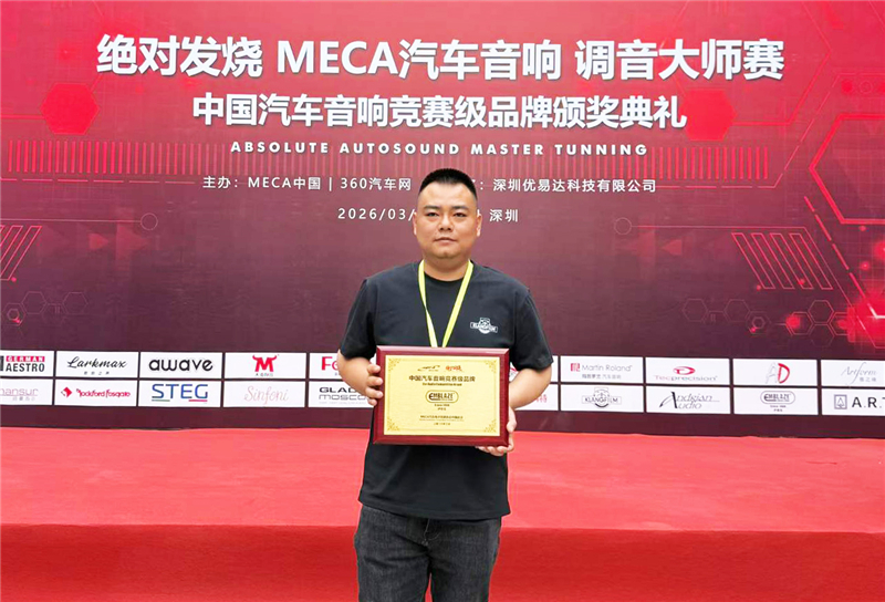 作为MECA中国的长期合作伙伴,伊曼宝多年来持续参与并支持国内汽车音响赛事发展,凭借扎实的技术积淀与稳定可靠的产品品质,在本次颁奖典礼上,MECA赛事组织特别授予伊曼宝"MECA中国汽车音响竞赛级品牌"荣誉称号,对其在推动行业赛事、促进技术交流等方面所做出突出贡献的充分肯定。