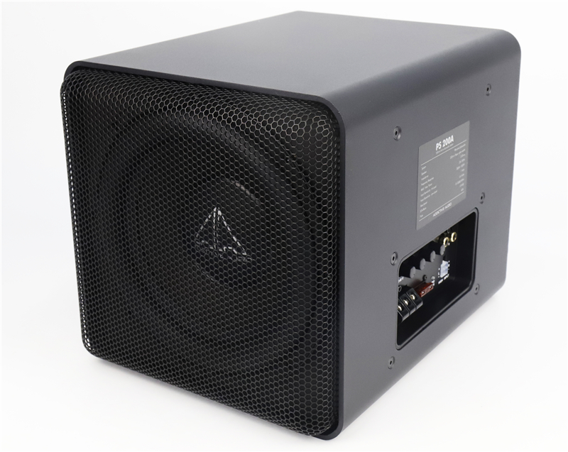 如此精小的尺寸,是怎么有那么震撼人心的低频的?这就不得不说说PS200A的声学设计了--PR被动辐射系统。内置是一只200mm的8寸超低音喇叭,紧压纸盆长冲程设计,重要的是在箱体的另一侧配置了一只同样8寸的无源辐射盆。这种PR被动辐射设计,你可以理解为高级版的"倒相箱",只是用无源辐射盆取代了传统的倒相管,好处是小容积箱体也可以获得与倒相箱同样深沉、富有弹性的低频延伸。当然了,这种设计的调校难度也是几何上升,只是因为Addictive尖锋有着深厚的声学底蕴,才让PS200A完美的做到了这一点。