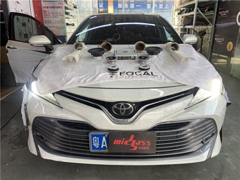 "家用老黄牛",丰田凯美瑞,虽然稳,但原车音响根本不够听。车主之前小试牛刀,在广州车梦响升级了套傲势黄盆小气动两分频,听了一段时间后又觉得还是不够好,所以决定再次升级,玩点发烧的:一套傲势大气动三分频音响系统。