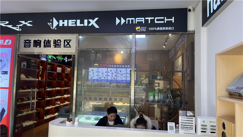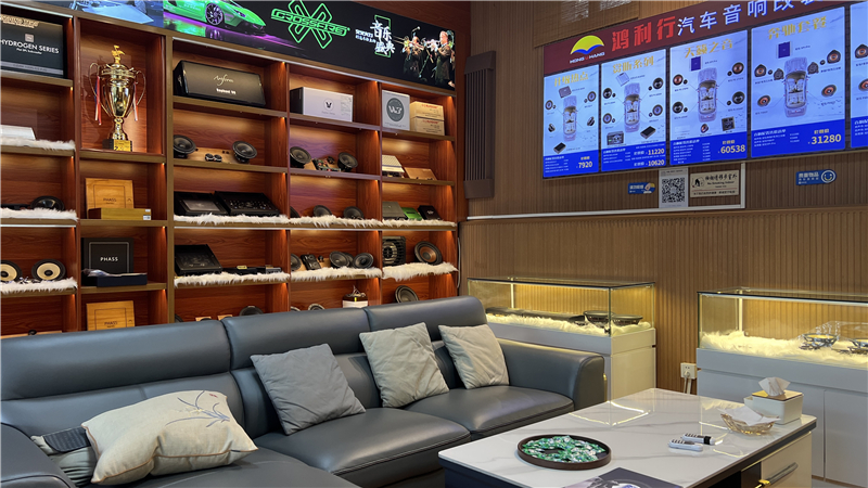 店面占地400多平米,店内也作了精心的规划。产品陈列区汇聚全球知名品牌,从雅之峰、交叉火力、妃仕,到劲浪、丹拿、创世纪,再到零点、喜力士、TEC,丰富的产品线满足不同层次需求。专业的试听室让您亲身体验天籁之音,标准化的施工车间确保每台车得到精心对待,而舒适的茶歇间则让等待成为放松时刻。